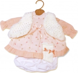 - Kompletny strój dla lalki 42 cm: sukienka, kamizelka i majteczki