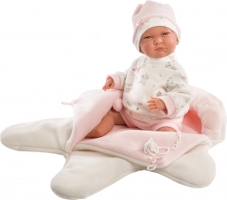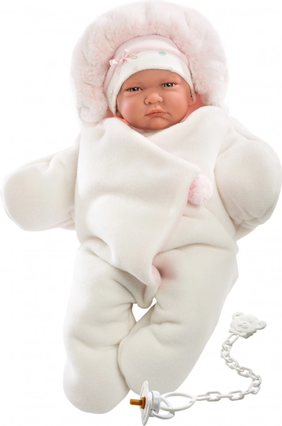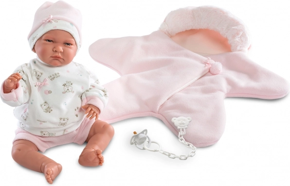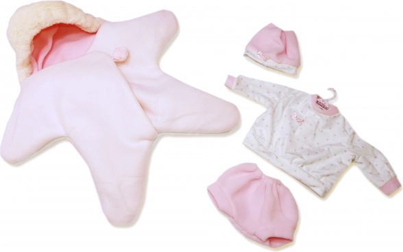 Podaruj swojej lalce wyjątkowy komfort i styl z tym 3‑częściowym ubrankiem Llorens. Główną gwiazdą zestawu jest dwustronny polarowy kombinezon w kształcie gwiazdy, który jest mięciutki, ciepły i świetnie sprawdza się do tulenia i zimowych spacerów z lalką. Dzięki uniwersalnemu rozmiarowi doskonale pasuje do lalek NEW BORN o wielkości 40–42 cm.