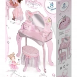 Oferuje dwie szufladki do przechowywania akcesoriów i lustro, co ułatwia zabawę w przebieranki.