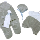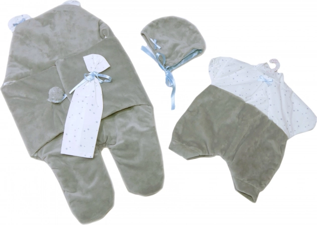 W skład zestawu wchodzi także rożek/otulacz, idealny do użycia w foteliku samochodowym.