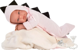 Ubranko dla lalki z motywem dinozaurów, idealne dla dzieci od 3 lat. Zaprojektowane dla lalek New Born o rozmiarze 43-44 cm, zapewnia ciepłe i komfortowe środowisko dzięki polarowemu śpiworkowi.