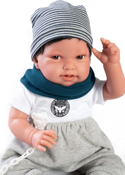 Realistyczna lalka niemowlę Antonio Juan Pipo Hair zachwyca delikatnym wyrazem twarzy, dopracowanymi detalami oraz możliwością naturalnego pozycjonowania dzięki stawom w rękach i nogach. Połączenie miękkiego materiałowego ciałka i zmiękczonego winylu na głowie oraz kończynach zapewnia bardzo przyjemny dotyk i autentyczny wygląd.