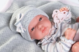Urocze niemowlę ANTONIO JUAN z całkowicie winylowym ciałem o wysokości 33 cm ucieszy wszystkie małe opiekunki. Wykonane ze specjalnego miękkiego winylu, ma realistyczne detale noworodka łącznie z oznaczonymi cechami płci i można je bez obaw kąpać (z wyjątkiem okolic rzęs). W zestawie znajduje się pudełko prezentowe oraz wysokiej jakości wykonanie z naciskiem na ekologię i zrównoważone materiały.