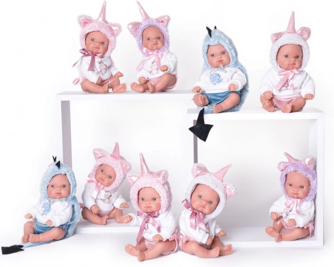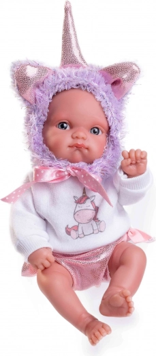 Ta ręcznie wykonana hiszpańska lalka przedstawia noworodka z realistycznymi detalami, które wspierają naturalną zabawę i rozwój wyobraźni. Całowinylowe ciało z miękkiego materiału jest przyjemne w dotyku i pozwala na kąpanie lalki w wodzie. Komplet uzupełnia uroczy strój jednorożca, który czyni lalkę ukochanym prezentem.