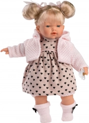 Lalka Llorens Roberta o wysokości 33 cm to idealna towarzyszka zabawy i rozwoju dziecięcej wyobraźni. Po wyjęciu magnetycznego smoczka mówi „mama”, „papa” i wydaje realistyczny dźwięk płaczu, który można łatwo uspokoić ponownym przyłożeniem smoczka. Miękkie materiałowe ciałko sprzyja przytulaniu, natomiast głowa i kończyny ze zmiękczanego winylu wyglądają naturalnie i są przyjemne w dotyku.