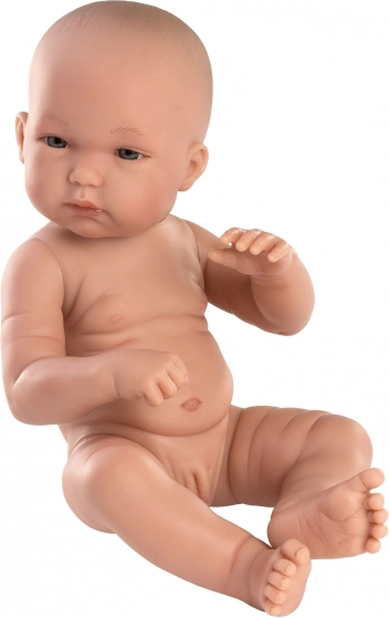 Ta realistyczna lalka niemowlę Llorens New Born chłopczyk jest wykonana z wysokiej jakości winylu i wiernie odwzorowuje dziecięce ciałko ze wszystkimi uroczymi detalami. Dzięki w pełni winylowemu ciału lalka nadaje się także do kąpieli (z wyjątkiem moczenia rzęs). Ręce i nogi są przymocowane na stawach, dzięki czemu lalka jest pozycjonowana i może siedzieć.