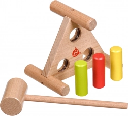 Ta wysokiej jakości drewniana zabawka do wbijania z trójkątną podstawą to idealny wybór dla dzieci, które kochają aktywną zabawę i naukę. Dzięki prostej i bezpiecznej konstrukcji dzieci ćwiczą małą motorykę, spostrzegawczość oraz percepcję przestrzenną. Kolorowe kołeczki (czerwony, żółty, zielony) zachęcają do odkrywania i wspierają naukę kolorów.
