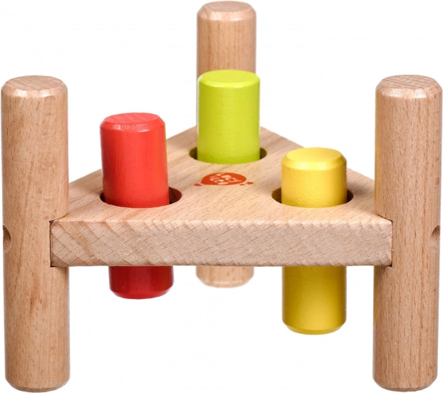 Wbijanie kolorowych kołeczków młoteczkiem wzmacnia małą motorykę, precyzję chwytu oraz koordynację ręka–oko u małych dzieci.