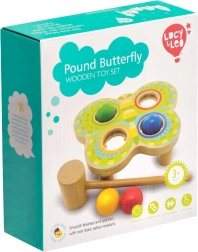 Ta wysokiej jakości drewniana zatłukiwanka w formie motyla ucieszy dzieci wesołymi barwami i sprytną zasadą zabawy. Dziecko delikatnie uderza młoteczkiem w kolorowe kulki, które wpadają do otworów w tym samym kolorze, ćwicząc koordynację i rozpoznawanie barw.