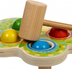 Wbijanie kolorowych kulek wspiera precyzję ruchów, chwyt oraz koordynację ręka–oko – idealne do codziennego treningu umiejętności.