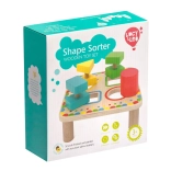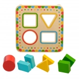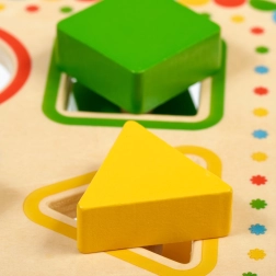 Ta oryginalna drewniana układanka oferuje więcej niż samo wkładanie kształtów. Trzy dwuczęściowe elementy trzeba najpierw poprawnie sparować, a następnie podczas wkładania obrócić, aby bez trudu przeszły przez planszę. Dzieci w naturalny sposób trenują koordynację ręka–oko, percepcję przestrzenną i taktyczne myślenie.
