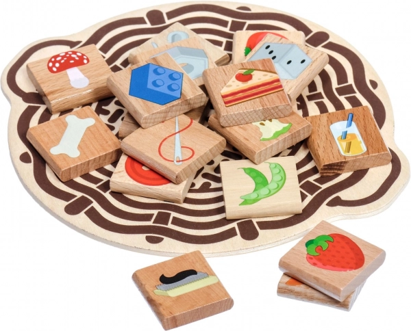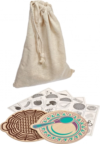 W zestawie znajdują się także 4 czarno-białe wzory do szybkich gier na spostrzegawczość i trening sortowania. Płytki po zabawie można schować do zamykowanego lnianego woreczka, dzięki czemu nic się nie zgubi. Drewniane elementy mają gładkie krawędzie oraz wyraźne, zrozumiałe ilustracje ułatwiające rozpoznawanie, w tym podchwytliwe przykłady, jak grzyby – jedne jadalne, inne niejadalne.