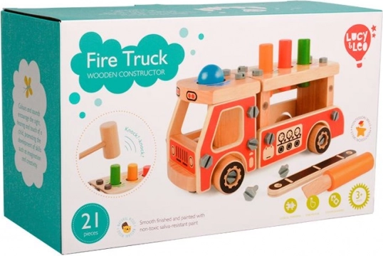 Zbuduj własny drewniany wóz strażacki i rozwijaj umiejętności z montessoriańskim zestawem konstrukcyjnym LUCY & LEO. Dzieci pokochają wbijanie kołków młotkiem, wkręcanie i składanie z 21 elementów, trenując przy tym małą motorykę, koordynację ręka–oko, rozróżnianie kolorów i kształtów oraz cierpliwość. Bezpieczne nietoksyczne farby i wytrzymałe, drewniane wykonanie zapewniają długą zabawę.