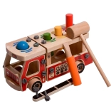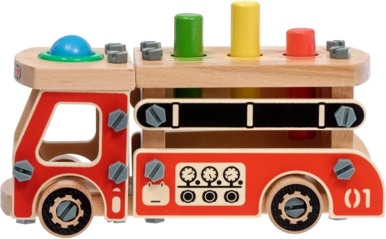 Ten kreatywny zestaw łączy konstrukcję i wbijankę w jednym. Dzieci najpierw złożą solidny drewniany wóz strażacki, a następnie skorzystają z czterech otworów w skrzyni do wesołego wbijania kolorowych elementów młotkiem. Dzięki wyrazistym kolorom i zróżnicowanym kształtom zabawka wspiera naturalną naukę i koncentrację.