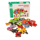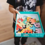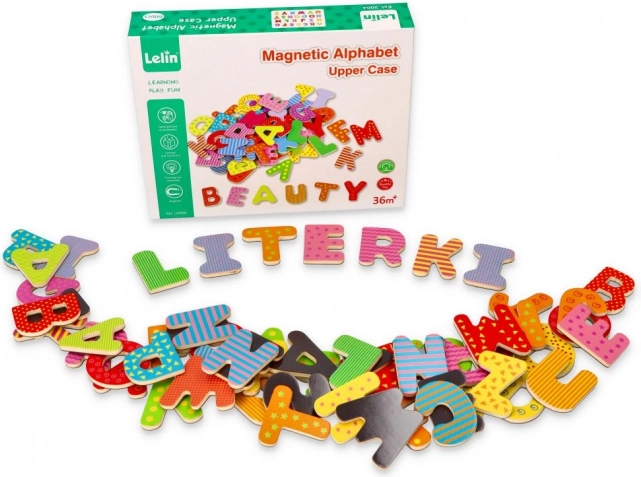 Ten zestaw magnetycznych drewnianych literek wspiera naturalną naukę poprzez zabawę. Dzięki magnetycznemu tyłowi trzymają się lodówki, tablicy magnetycznej czy metalowych powierzchni, dzięki czemu dzieci łatwo uczą się alfabetu, łączenia sylab i pierwszych słów.