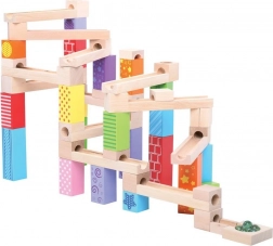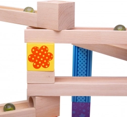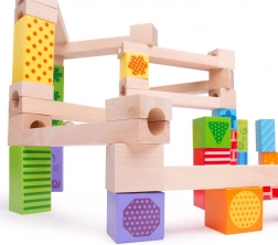 Ten drewniany kulodrom jest idealny dla kreatywnych dzieci, które lubią budować własne trasy. Zawiera 53 elementy, które pozwalają na wiele wariantów i projektów wynikających z wyobraźni dziecka.
