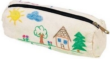 Piórnik z dziecięcymi rysunkami słońca, chmurek, drzew i domków. Daje przestrzeń dla kreatywności i wspiera artystyczną ekspresję Twojego dziecka.