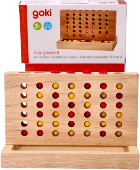 Goki drewniana gra cztery w rzędzie to strategiczna gra planszowa, która zapewnia nieskończone godziny zabawy dla dwóch graczy. Celem jest jako pierwszy połączyć cztery kulki w poziomym, pionowym lub ukośnym rzędzie.