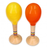 Drewniane instrumenty są ozdobione jaskrawymi wzorami, które podkreślają ich estetykę.
