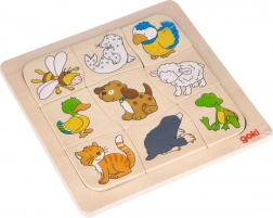 Urocza drewniana układanka wkladanka GOKI oferuje mądrą naukę przez zabawę dla najmłodszych. Dzieci od 2 lat ćwiczą małą motorykę, logiczne myślenie i wyobraźnię dzięki 9 elementom oraz płycie bazowej z frezowanymi konturami ułatwiającymi dopasowywanie. Wysokiej jakości drewniane wykonanie i nacisk na bezpieczeństwo ucieszą każdego rodzica.