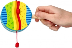 Tradycyjny „bęben żebraczy” w nowoczesnym wydaniu marki GOKI to świetny instrument akompaniujący dla dzieci. Obróć rączkę, a czerwone koraliki na sznurkach rytmicznie uderzą w membranę bębenka. Prędkość obrotu naturalnie zmienia tempo i charakter dźwięku, co wspiera percepcję słuchową i poczucie rytmu.