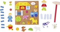 Gra wspiera drobną motorykę i kreatywność u dzieci od 3 lat. Dzieci mogą z łatwością przytwierdzać drewniane kształty do korkowej płyty za pomocą młotka i gwoździ, a następnie je demontować, podejmując się nowych kreatywnych przygód.
