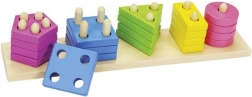 W zestawie znajduje się solidna płyta bazowa oraz 20 kolorowych elementów w pięciu kształtach. Wysoka jakość wykonania z litego drewna i nietoksyczne farby zapewniają długą trwałość i bezpieczną zabawę. Idealne dla dzieci od 2 lat – do domu i przedszkola.