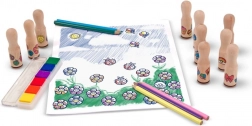 Ten luksusowy zestaw stempli dostarcza dzieciom wszystkiego, czego potrzebują do tworzenia wesołych obrazków, kartek i projektów szkolnych. Dzięki drewnianym stemplom z ulubionymi motywami oraz intensywnym, zmywalnym tuszom mali artyści mogą tworzyć rozmaite kombinacje i opowieści.