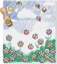 Trwałe, drewniane korpusy z motywami takimi jak słoneczko, serduszko czy motyl zapewniają wygodny chwyt i piękne odbitki na papierze.