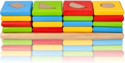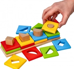 Lite drewno i solidne wykonanie zapewniają długą żywotność oraz bezpieczną zabawę. Zestaw zawiera płytę podstawową i 16 kolorowych kwadratów, które można układać, sortować i łączyć według kształtu i koloru – idealne do nauki inspirowanej metodą Montessori w domu i w przedszkolu.