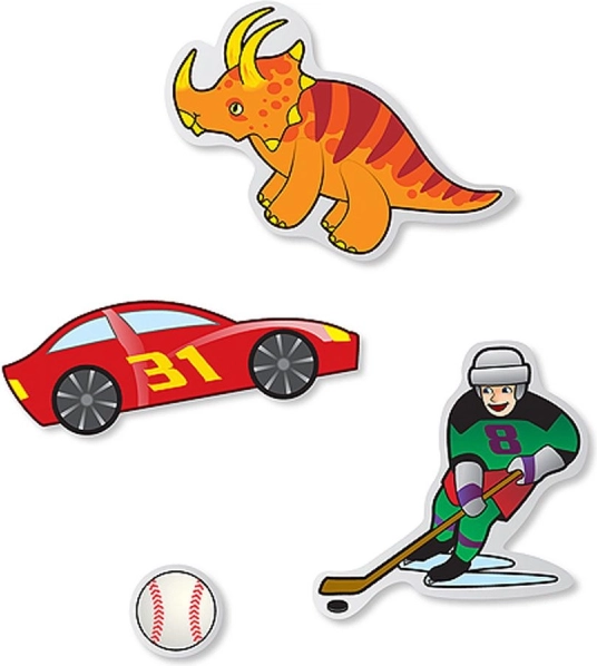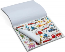 Naklejki są przejrzyście podzielone na 10 tematów, takich jak dinozaury, sport, samochody czy kosmos – dzieci szybko znajdą to, co je bawi.