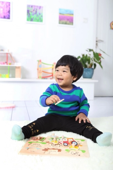 Odkryj uroki farmy z tą drewnianą układanką. Dzieci będą zachwycone odkrywaniem postaci i scen z farmy, które przybliżą im życie na wsi. Specjalne uchwyty ułatwiają manipulację poszczególnymi elementami, dzięki czemu zabawka jest odpowiednia także dla najmłodszych.
