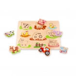Urocza drewniana układanka idealna dla dzieci, które kochają farmę. Pozwala rozwijać motorykę i uczy poznawać świat wokół nich.
