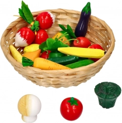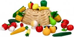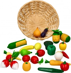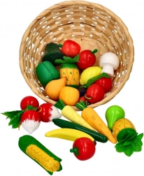 Koszyk o wymiarach 20 × 6,5 cm jest praktyczny do przechowywania i przenoszenia. Dzięki 21 elementom dzieci mogą wspólnie odgrywać role sprzedawcy i klienta, rozwijać komunikację, umiejętności społeczne i uczyć się o rodzajach owoców i warzyw.