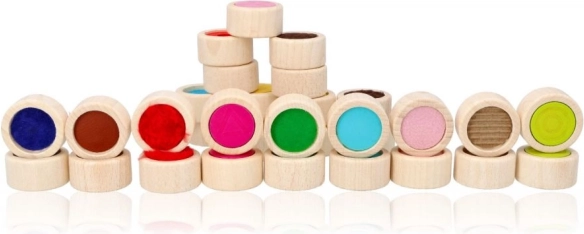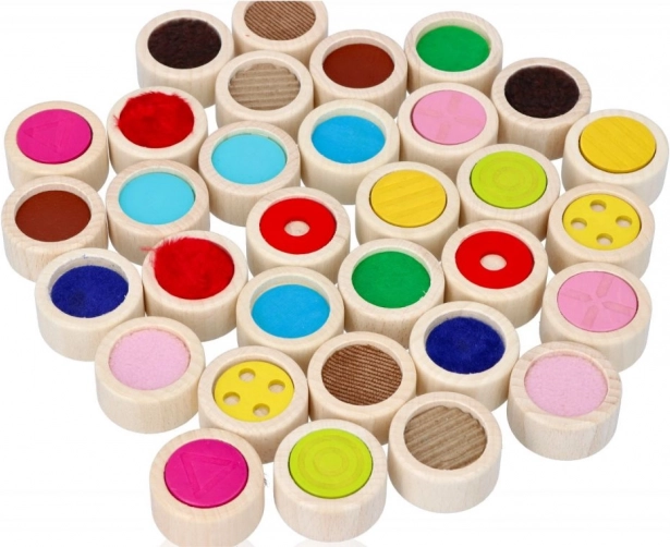 Drewniane pexeso dotykowe jest idealne do stymulacji zmysłów dotykowych i sensorycznych. Kamienie do gry w kształcie walców z masywnego drewna mają średnicę 4 cm i 16 różnych powierzchni. Gra może być rozgrywana z zamkniętymi oczami jako wyzwanie w znalezieniu tej samej powierzchni lub jako klasyczne pexeso, kładąc kamienie stroną kolorową do dołu.
