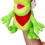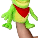 Puszysta pacynka Żaba Frilo z otworem na rękę umożliwia interaktywną zabawę i płynne sterowanie ruchami paszczy zwierzęcia. Dzięki miękkiemu i delikatnemu materiałowi staje się również uroczym przytulankiem.