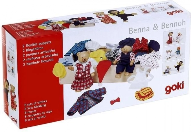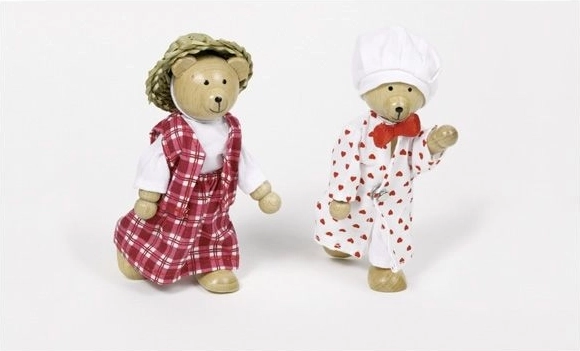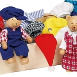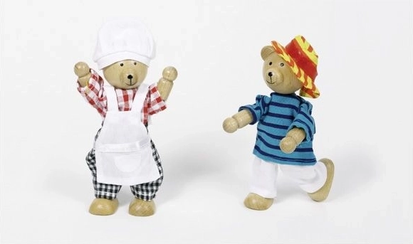 Ten uroczy zestaw zawiera parę misiów z bogatą ofertą ubranek i akcesoriów, umieszczonych w przejrzystym drewnianym pudełku. Dzieci mogą układać główki, tułów i nóżki, tworzyć wesołe kombinacje oraz uczyć się kolorów i nastrojów.