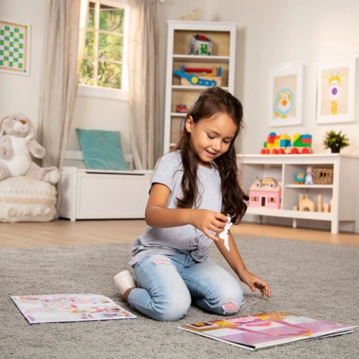 Ten kreatywny zestaw przenosi do urokliwego świata księżniczek, sal tronowych i królewskich komnat. Naklejki wielokrotnego użytku można łatwo przemieszczać, łączyć i nakładać warstwowo, dlatego każda zabawa przynosi nową opowieść. Idealny w domu, w podróży i jako prezent dla małych miłośników baśni.