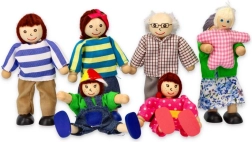 Ta dopracowana w detalach rodzinka to idealne uzupełnienie każdego domku dla lalek. Figurki z litego drewna w kolorowych tkaninach są przyjemne w dotyku, bezpieczne i wytrzymałe do codziennej zabawy. Dzięki różnym rozmiarom (rodzice, dzieci, niemowlę) dzieci łatwo tworzą własne opowieści z rodzinnego życia.