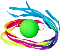 Wielobarwne wstążki przymocowane do piłeczki dodają każdemu rzutowi dynamiki i różnorodności ruchu.