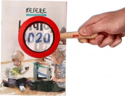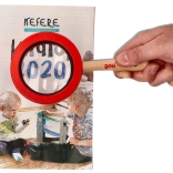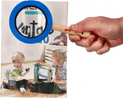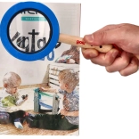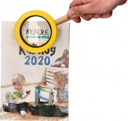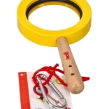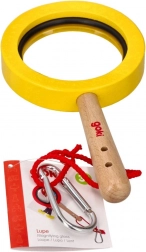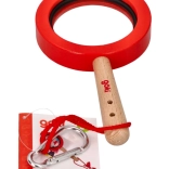 Dziecięca lupa z mocnym, drewnianym korpusem, idealna do badania i dostrzegania detali w naturze.