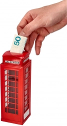 Udekoruj swoje wnętrze tą skarbonką w kształcie brytyjskiej budki telefonicznej. Dbałość o szczegóły, takie jak szklane płyty i napis 'TELEPHONE' na szczycie, czynią z tej skarbonki nie tylko funkcjonalny przedmiot, ale także stylową dekorację. Ten model jest idealny dla wszystkich kategorii wiekowych i oferuje zabawny sposób na oszczędzanie pieniędzy.