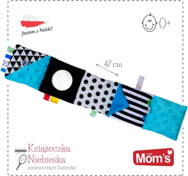 Różne faktury, szeleszczące strony, bezpieczne lusterko oraz kolorowe metki pobudzają dotyk, słuch i ciekawość, wydłużając czas zabawy.