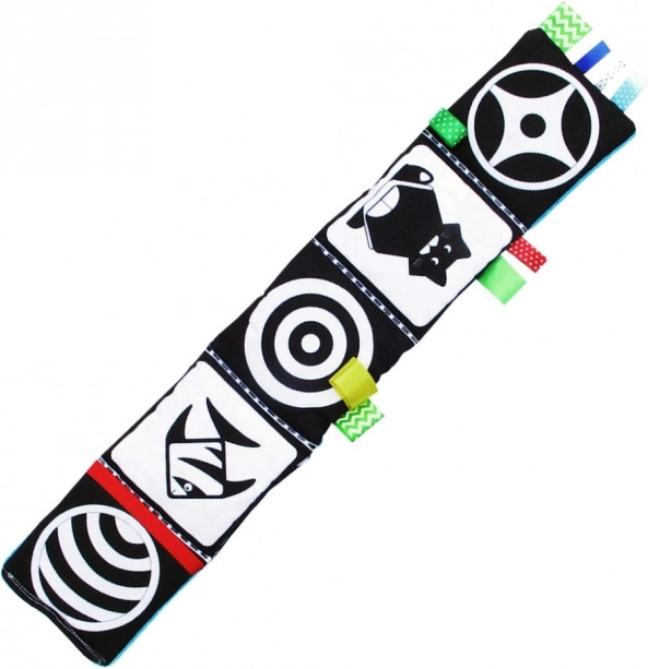 Czarno-białe i czerwone motywy przyciągają uwagę noworodków oraz wspierają ostrość widzenia i koncentrację od pierwszych tygodni.