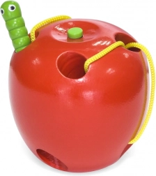 Urocza drewniana zabawka do przewlekania VIGA jabłuszko z robaczkiem rozwija motorykę małą, koordynację ręka–oko oraz cierpliwość. Dzięki wielu otworom oferuje nieskończone kombinacje przewlekania, więc dzieci nie będą się nudzić. Wysokiej jakości bukowe drewno i nietoksyczne farby gwarantują bezpieczną i atrakcyjną zabawę w domu i w podróży.