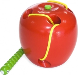 Małe rączki pokochają przewlekanie zielonego robaczka przez czerwone jabłuszko. Każde przejście jest inne, co wspiera kreatywność, pamięć i precyzję ruchów. Kompaktowy rozmiar pozwala zabrać zabawkę wszędzie – do auta, w odwiedziny czy na wakacje.