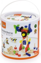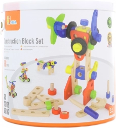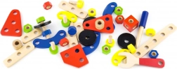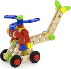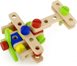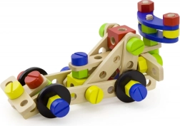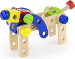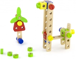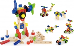 Ten uniwersalny drewniany zestaw konstrukcyjny oferuje dzieciom nieskończone możliwości budowania – od pojazdów i zwierzątek po helikopter czy robota. Dzięki solidnym drewnianym elementom, śrubkom i łącznikom dzieci ćwiczą koordynację oko–ręka i poznają podstawy myślenia konstrukcyjnego.