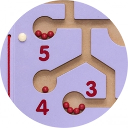 Dzieci za pomocą magnetycznej pałeczki prowadzą kuleczki przez labirynt, trenując małą motorykę, koordynację oraz ucząc się cyfr w formie zabawy.