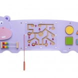 Duża drewniana tablica w kształcie hipopotama oferuje kilka aktywności do mądrej zabawy i nauki. Rozwija małą motorykę, logiczne myślenie oraz poznawanie liczb, kolorów i kształtów. Dzięki magnetycznemu labiryntowi, liczydłu i sorterowi kształtów jest idealna do użytku domowego i przedszkoli. Wykonana z lakierowanego drewna z bezpiecznymi farbami, certyfikat FSC.
