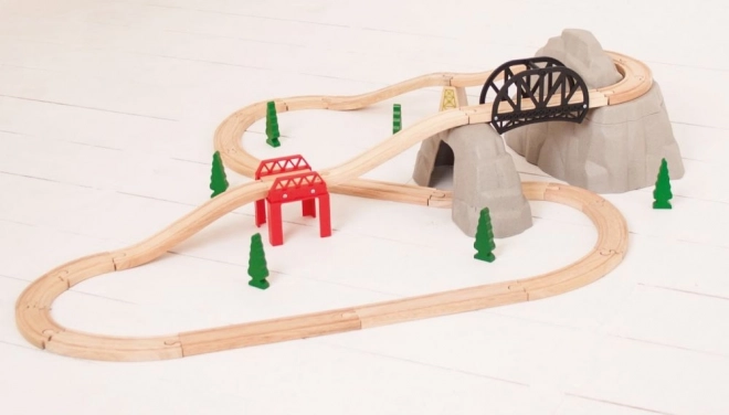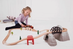 Wyrusz na przygodę z tym drewnianym zestawem kolejowym, który oferuje przepiękną górską trasę. Zestaw zawiera: